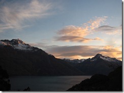 We left Te Anau after 3 days for Queenstown with the intention of going back to do some hikes, and also so John could do an admissions test for a school. The drive to Queenstown was a little scary. It was pouring rain pretty hard and the wind was terrific. The van doesn’t handle wind to well, so we felt the full brunt of it. The drive was still beautiful, and as we came to the mouth of the Wakatipu Lake, the mountains came into view. We arrived at Jenna and Duncan’s a little after 6pm and had a wonderful catch up session. They are such lovely people and have been so wonderful to let us stay with them. Not to mention they have quite possibly the best view in town.